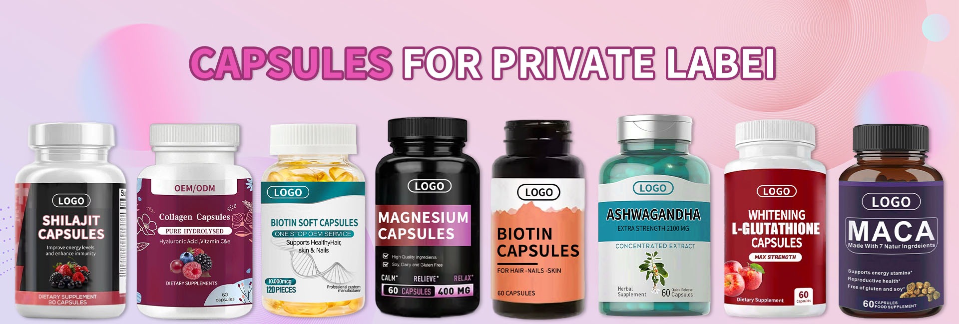 Etiqueta privada 7 ingredientes naturales Ashwagandha Maca cápsulas fórmula personalizada para adultos